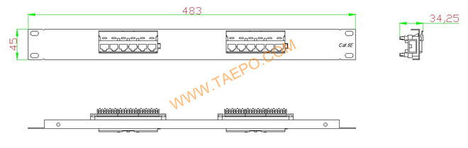 12-port patch panel, CAT5E, RJ45, UTP, 19", 1U
