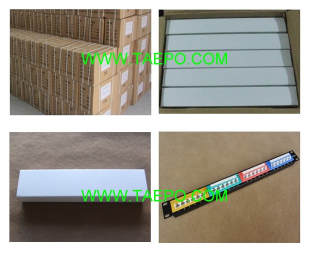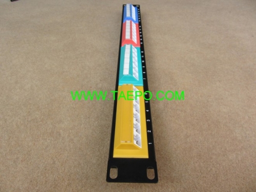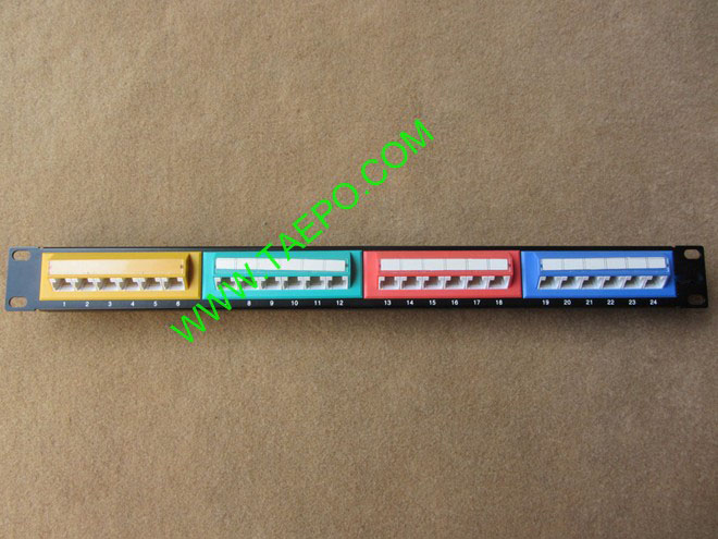 24-port patch panel, CAT6, RJ45, UTP, 19", 1U, 45 degree, with color label