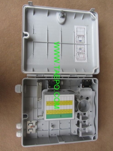 Fiber optic splitter box, outdoor, SC, 16 fibers, plastic housing, 330x280x95mm, with 16F splice tray, 16F heat shrink sleeves, without adapters, pigtails